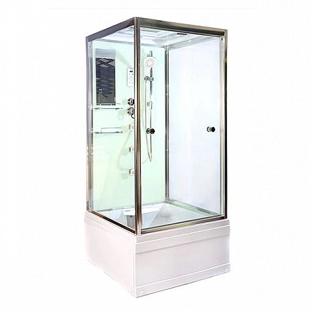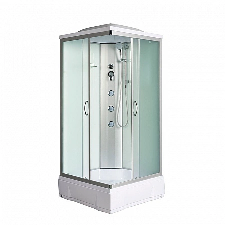 Cabina de dus foarte compacta in stil simplu. Tava din mijloc acrilic antiderapant este sigură pentru persoanele în vârstă. Paharele sunt disponibile în două versiuni: transparente și maturi. Forma pătrată se va potrivi cu ușurință în orice colț, iar dimensiunile de 90x90 economisesc spațiu. Înălțimea cutiei este ușor de plasat în camera de la mansardă. Asamblarea este simpla, fara silicon, piesele structurii se potrivesc bine intre ele. Clemele sunt din otel inoxidabil iar robinetul este din alama cu maner cromat. Hidromasajul de două tipuri, o oglindă și rafturi completează frumos pachetul modest.Dar va trebui să te ocupi de problema înlocuirii ochelarilor în garanție pe cheltuiala ta, iar aceștia sunt destul de fragili la acest model.