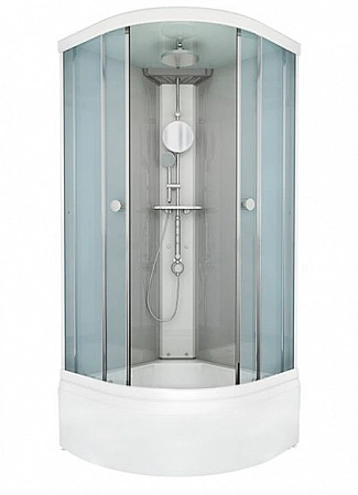 Cabină de duș confortabilă de la un producător autohton. Dacă se dorește, poate fi completat cu un duș cu ploaie, o oglindă, rafturi, dar acestea nu sunt în setul principal. Dar există tot ce ai nevoie: un palet armat puternic pe un cadru metalic, uși de sticlă etanșate, un mixer și o cutie de apă. Panourile din spate au două opțiuni de design: in și grafit. Paletul acrilic nu scârțâie și este uniform în lumină. Instalațiile sanitare nu se deteriorează din cauza apei dure și au o garanție de 3 ani, iar cabina de colț în sine - 10 ani.Din punct de vedere al adâncimii, paletul este considerat mediu, dar îl înlocuiește complet pe cel înalt. În interiorul cabinei sunt puține părți proeminente și nu sunt aglomerate. Reclamațiile determină necesitatea curățării încuietorilor magnetice în timpul asamblarii și a utilizării unui etanșant.