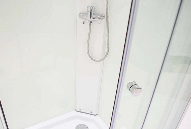 Designul cabinei este gândit pentru a se potrivi tuturor nevoilor: o tavă antiderapantă din marmură, un scaun rabatabil, o varietate de funcții și o locație convenabilă pentru accesorii.