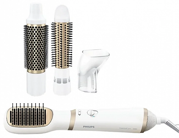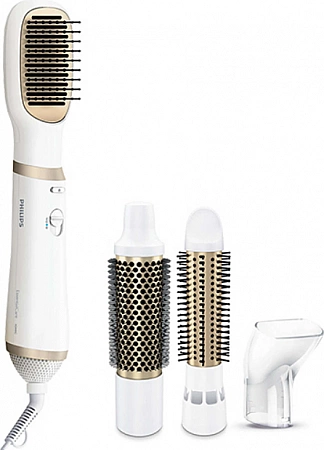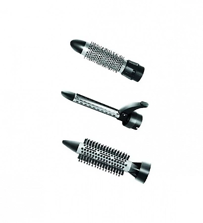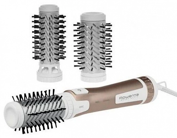 O perie puternică pentru uscător de păr vă va ajuta să creați un stil frumos în doar câteva minute. Are diferite condiții de temperatură, inclusiv alimentarea cu aer rece, debitul este reglabil. Funcția de ionizare oferă un efect blând asupra părului, acestea nu se usucă, ci, dimpotrivă, devin moi și strălucitoare, nu se electrizează. Setul include două duze, acestea se rotesc automat, ceea ce simplifică și mai mult procedura de coafare. Modelul nu este cel mai compact, dar se potrivește confortabil în mână. Cu ajutorul acestuia, puteți da forma dorită coafurii și puteți crea un volum bazal pronunțat. Printre deficiențe, utilizatorii notează locația incomodă a butoanelor și costul destul de ridicat.