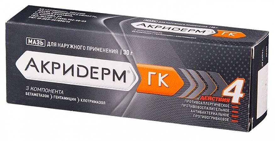 Cel mai prescris unguent pentru psoriazis. Medicamentul este hormonal, aplicat de 2 ori pe zi numai pe zonele afectate ale pielii ale corpului. Judecând după recenzii, unguentul acționează rapid, plăcile încep să se vindece și să devină palide, iar mâncărimea dispare după 1-2 aplicări. Adevărat, rezultatul utilizării depinde complet de starea inițială a pielii și de stadiul bolii. Cursul tratamentului este determinat de un dermatolog: nu este recomandat să utilizați singur remediul. Cert este că el, ca și alte GCS, are o serie de contraindicații. În plus, remediul poate să nu fie deloc potrivit din cauza naturii evoluției bolii și, cu utilizarea prelungită necontrolată a Akriderm GK, poate provoca supradozaj și dependență.