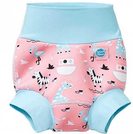 Splash About sunt scutece de înot reutilizabile care sunt vizual similare cu chiloții strâmți obișnuiți, dar diferă semnificativ în funcție de funcționalitate.Fabricate din neopren pentru costum de neopren, sunt 100% rezistente la apă împotriva căderii fecalelor în apă. Manșetele strânse și o centură largă confortabilă ajută, de asemenea, în acest sens. Splash About este disponibil în cinci mărimi, potrivite copiilor de la naștere până la 2-3 ani și are mai multe modele pentru băieți, fete și unisex. Pentru ca chiloții să își îndeplinească pe deplin sarcinile, este important să alegeți mărimea potrivită în funcție de înălțimea și recomandările producătorului. Astfel de costume de înot sunt destul de scumpe, dar pot fi folosite până când devin mici. Modelul este recomandat pentru utilizare de către Asociația Britanică de înot pentru sugari. În ciuda costului, există o mulțime de recenzii bune despre acesta.