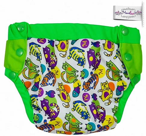 Scutecele de înot reutilizabile de la marca Mamalino arată ca chiloții obișnuiți.Sunt realizate din materialul lor impermeabil, care ține în siguranță fecalele bebelușului și împiedică căderea acestuia în apă. Datorită țesăturii dense, nisipul și pietrele mici nu vor pătrunde în interiorul chiloților atunci când faceți baie unui copil într-un iaz deschis. Modelul este gandit in asa fel incat sa nu impiedice miscarile copilului, sa nu ii limiteze activitatea in timpul inotului. Poti sa iti pui chilotii prin picioare, ca niste trunchiuri de baie obisnuite, si desfacand nasturii situati in lateral. Producătorul oferă chiloți în două mărimi și multe culori. Există puține recenzii despre acest produs, primește în mare parte evaluări bune în ele.