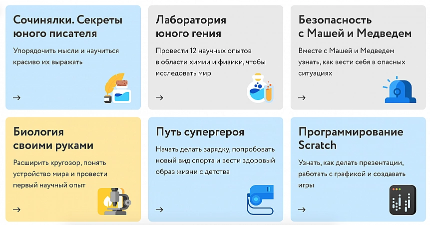 În școala online, puteți găsi un curs la orice materie pentru școlari. Există pachete pe termen lung cu cursuri, mini-cursuri, lecții individuale cu tutore și un program care înlocuiește complet studiul într-o școală obișnuită.