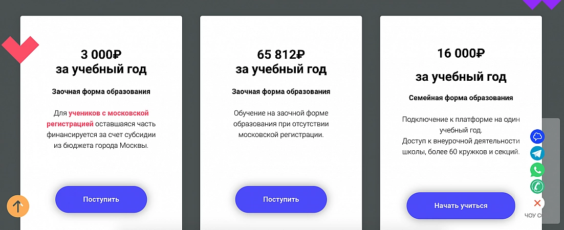 Școala online este concepută pentru educația din clasele 1 până la 11. Programele dezvoltate aici respectă pe deplin standardele de stat. Scolarilor li se ofera 4 formate de invatamant. Primul implică lecții video pe orice materie din ciclul primar, gimnazial și liceal. Al doilea ajută la îmbunătățirea cunoștințelor celor care studiază într-o școală obișnuită. Al treilea reprezintă înscrierea la o școală online. Al patrulea vă permite să creați un plan individual cu tutori cu profil restrâns. În general, părinții sunt mulțumiți de nivelul predării la matematică, engleză, rusă și alte discipline. Cu toate acestea, unii utilizatori s-au confruntat cu faptul că este dificil să ajungi la școală înainte de înscriere.