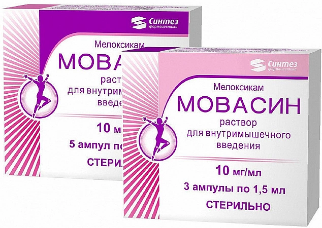 Medicamentul este prescris în terapia complexă a artritei, artrozei, proeminenței discurilor intervertebrale, cu periostita. Ieftinul Movasin face față bine unui sindrom de durere destul de pronunțat. Efectul medicamentului apare în 15 minute după administrare. Injecțiile se fac, de obicei, nu în fiecare zi, ci o dată la două zile. În comparație cu Movalis, medicamentul are un efect antiinflamator mai puțin pronunțat. Cu toate acestea, genericul este adesea folosit în practică. Puteți găsi medicamentul în aproape orice farmacie din țară. Fiolele sunt eliberate fără prescripție medicală.