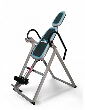 Masa de inversare pliabilă este concepută pentru utilizatorii de la 149 la 198 cm și o greutate de până la 150 kg Toți membrii familiei, cu excepția celor mai mici, se pot angaja în ea. Designul simplu facilitează pregătirea simulatorului pentru lucru - este dezasamblat și asamblat în același mod ca o scară. Oferă reglare pentru înălțime și gleznă, unghiul de înclinare este setat între 20-100 de grade. Sistemul de fixare a gleznei elimină complet posibilitatea deschiderii. Distanța confortabilă selectată dintre role este fixată cu un șurub, iar picioarele sunt înfășurate lateral. Clienților le place prețul accesibil al mesei de inversare și caracteristicile sale care nu sunt inferioare modelelor mai scumpe. Este că designul simulatorului este puțin rustic.