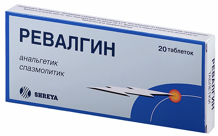 Revalgin | 479 rub. | metamizol de sodiu, pitofenonă, bromură de fenpiverinium | India |