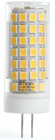 Lampa LED Feron LB-434 este la fel de potrivită atât pentru iluminatul local, cât și pentru iluminatul principal în aproape orice cameră. Toate mulțumită luminozității atipic ridicate pentru baza G4 - puterea fluxului luminos este de până la 780 lm. Setul vine cu 5 lămpi deodată, astfel încât să puteți completa un mic candelabru cu un astfel de set. Temperatura de culoare a strălucirii este de 6400K, ceea ce corespunde unei lumini albe destul de rece. Rețineți că becurile din set sunt realizate în formatul „porumb”. Pe de o parte, acest lucru garantează o distribuție uniformă a luminii, pe de altă parte, poate crea probleme de instalare din cauza corpului mare. Există două dezavantaje - un consum destul de mare față de alte modele descrise în evaluare și nu cel mai accesibil preț pe copie.