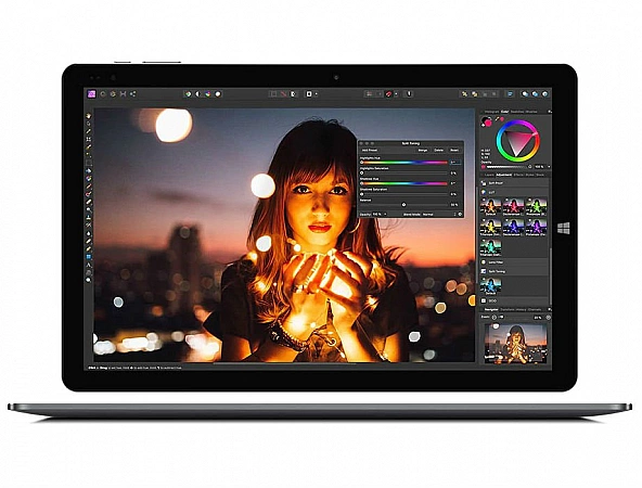 Den billiga surfplattan har en högkvalitativ IPS 2.5D-skärm med slitstarkt glasskydd. Färgerna är realistiska, ljusstyrkan räcker för video och spel.