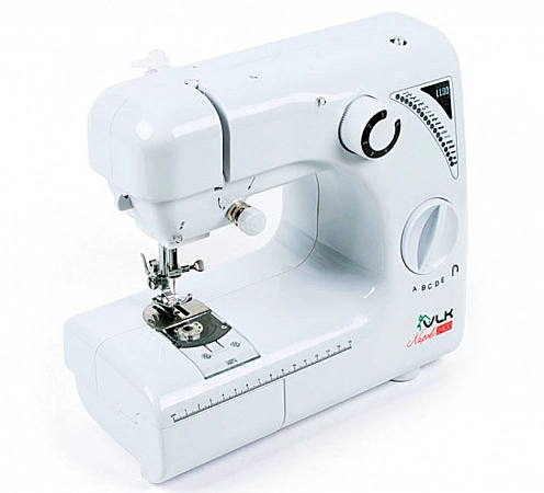 Den klassiska modellen med en vertikal krok är det bästa valet inte bara för nybörjare. Symaskinen har en utmärkt uppsättning stygn som behövs för att sy och reparera kläder. Pressarfotens höjd är inte justerbar, men dess höjd på 9 mm räcker för att sy tjocka tyger. Men att sy på en knapp är redan problematiskt. Men maskinen klottrar lika bra både tunn bomull och tjocka jeans i flera lager. Linjen är slät, utan sträckning och onödiga veck. Och genom att installera en speciell fot kan du till och med sy stickade plagg. Slingorna är snygga, utförda i fyra steg. Fodralet är av metall, med minimalt med plast. Längst ner finns ett fack för förvaring av sytillbehör.