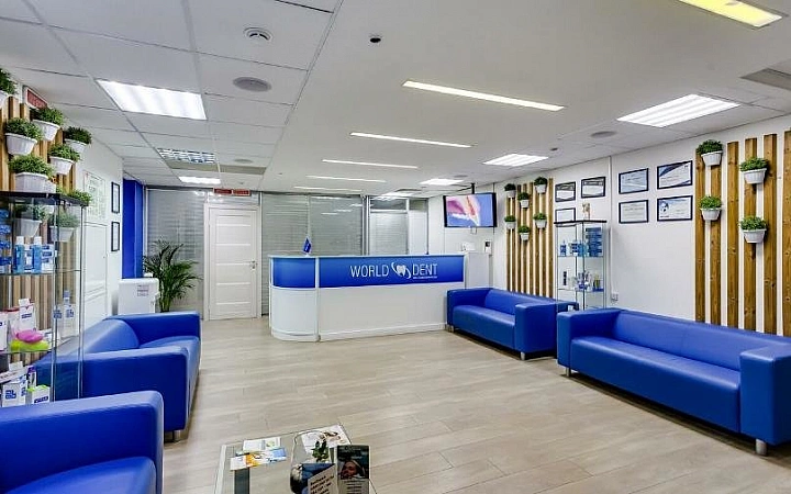 World Dent är en tandvård i affärsklass som specialiserar sig på alla aspekter av tandsystemet. Företaget använder utrustning av märket Sirona och Kavo. Institutionen har 12 läkare, licensen erhölls 2017. Under denna tid har företaget utvecklats inom alla områden: terapi, ortopedi, kirurgi, ortodonti, parodonti, implantation. Läkare utför förebyggande hygien, konsultationer, diagnostik, borttagning och behandling. Zoomteknik används för blekning. Efter behandlingen får kunderna märkestandkräm i present. Protesen har ett års garanti. Kliniken erbjuder de bästa förutsättningarna för VIP-kunder. Till exempel en konsultation med en doktor i medicinsk vetenskap, eller att boka en hel institution för en person. Resten tas emot efter överenskommelse utan dröjsmål. Patienter har inga allvarliga anspråk på kvaliteten på behandlingen. Men många klagar på införandet av ytterligare procedurer och behandling på kredit, ihållande samtal med en inbjudan till undersökning, rengöring eller behandling.Om du också kontaktar kliniken bör du veta att tjänsterna här är mycket dyra.