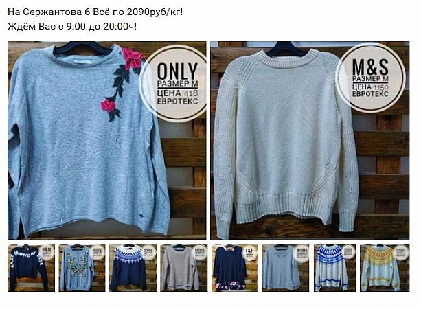 Eurotex är den populäraste begagnade kedjan i Rostov-on-Don. Att döma av kundrecensioner består butikernas framgång av två komponenter: högkvalitativa varor från europeiska tillverkare och utmärkt service. Av fördelarna noteras också ofta ett enormt urval av modeller och nya saker med taggar utgör en betydande andel. Det stora antalet butiker är också glädjande - det finns en butik i alla delar av staden, så det kommer inte att vara svårt att ta sig dit. Till skillnad från andra liknande ställen säljs här kläder efter vikt och kostnaden per kilo beräknas. Det kommer faktiskt ut ganska billigt, men vissa kunder klagar på att priserna för vissa saker fortfarande är för höga.