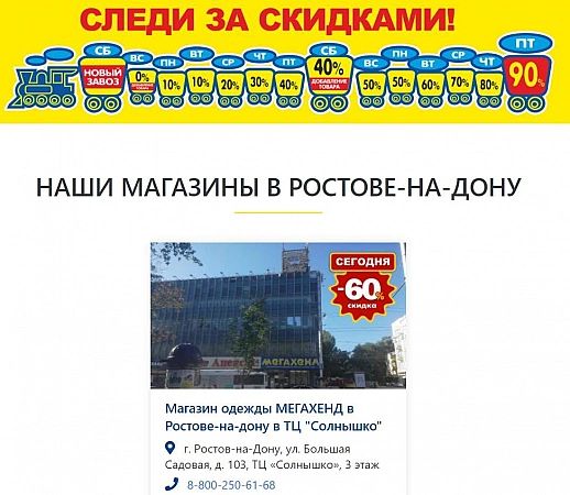 ZigZag Udachi erbjuder de lägsta priserna i Rostov-on-Don. Även utan rabatter är kostnaden för varor flera gånger lägre än i andra liknande butiker.