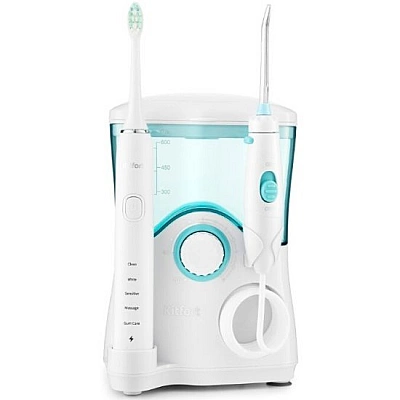 Ett effektivt tandvårdscenter från den inhemska tillverkaren Kitfort KT-2904 kännetecknas av närvaron av en rengöringstimer, en stor uppsättning tillbehör och en lojal kostnad. Högkvalitativ munvård tillhandahålls av 7 munstycken. Alla av dem passar kompakt i en speciell boxkåpa. Inbyggd 600 ml e-vätskebehållare. Detta räcker för en fullständig städning.En tunn men stark stråle kommer inte bara kvalitativt att rengöra munhålan från matrester, utan också massera tandköttet. Kunderna berömmer enheten för funktionalitet och kraft, samt bekväm kontaktlös borstladdning. Av minusen noteras endast en kort nätverkskabel.