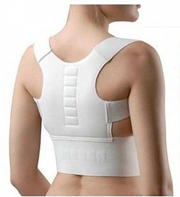 elastisk används för att korrigera axelgördelns position. De används i stor utsträckning för att eliminera böjning genom att dra axlarna bakåt. Korrektorns design består av flera remmar som täcker axellederna och korsar området för skulderbladen. Huvudindikationer: de inledande stadierna av skolios, böjning, förebyggande av ryggradspatologier.