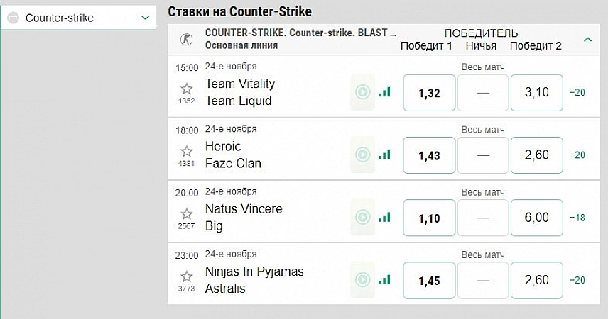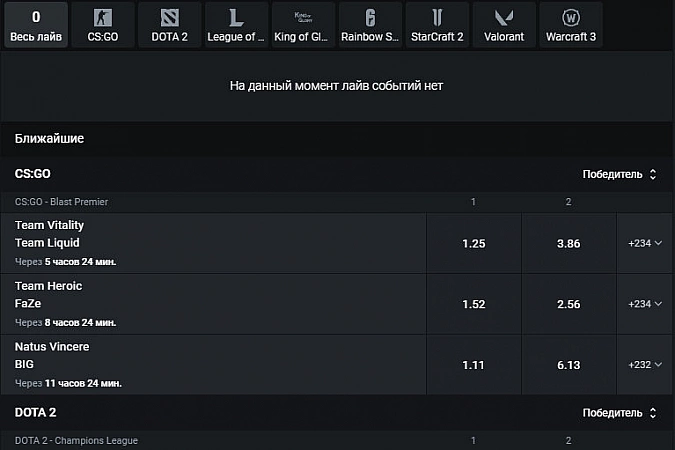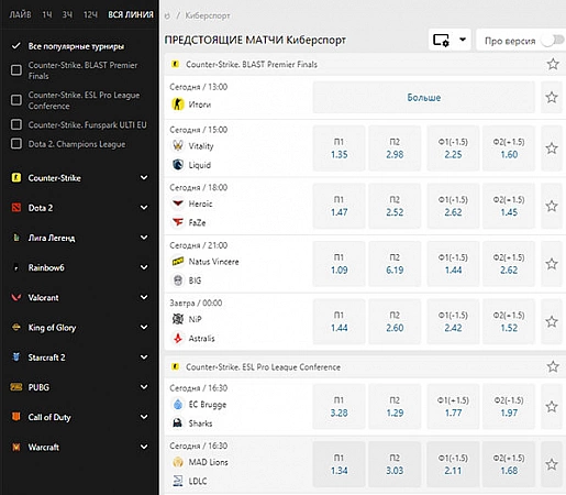Sedan lagen om tvångslicens för bookmakers trädde i kraft har många kontor försvunnit från marknaden. Vissa försvann helt enkelt, andra gick under jorden. Och den första som fick det eftertraktade papperet var Parimatch-spelföretaget. Hittills tror många spelarna att detta är det bästa företaget med jämna odds och hög tillförlitlighet. När det gäller eSport bör det sägas om en enorm uppsättning discipliner. Listan ovan är långt ifrån komplett och uppdateras ständigt. Om CS:GO och Dota 2 länge har blivit klassiker, så ser spel som PUBG eller Valorant väldigt fräscha ut. Vi noterar också en bekväm sida där du snabbt kan hitta all information. Det är sant, först efter registrering och verifiering.