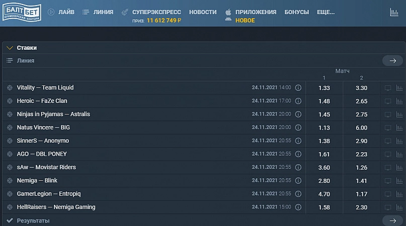 Många tror att moderna bookmakers helt har gått online, men så är det inte. Nästan alla företag har fysiska klubbar dit du kan komma, lägga ett vad och se det aktuella evenemanget i realtid.Och rekordhållaren för antalet sådana kontor är BaltBet, som har filialer i dussintals städer. Dessutom är alla deras klubbar utrustade med den senaste tekniken och är strikt reglerade i enlighet med regler och lagstiftning. När det gäller onlinetjänsten är webbplatsen ganska bekväm och utan påträngande reklam. Det är sant att bookmakern inte tillhandahåller välkomstbonusar, och det finns inte lika många eSport-discipliner som andra märken.