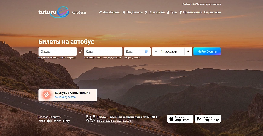 Tutu.ru är Rysslands nummer 1 resetjänst som låter dig planera din resa från och till. Här kan du köpa biljett till flyg, tåg, buss eller tåg; boka hotellrum, boka en rundtur eller utflykt. Busstransporter utförs i Ryssland, OSS-länderna och Europa, det finns också separata rutter till sjöss. Webbplatsen är väldigt bekväm och på några minuter kan du välja de bästa alternativen och göra ett köp. Tyvärr fanns det några brister, och många klagar på att företaget kraftigt överskattar kostnaden för tjänster, plus att när man gör en avkastning håller det tillbaka en del av medlen, vilket också är mycket obehagligt. Samtidigt arbetar stödpersonalen ineffektivt och har ingen brådska att ta itu med problem.