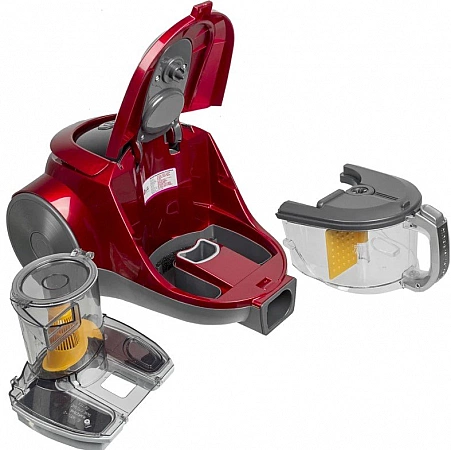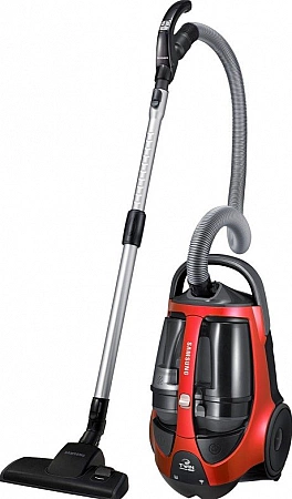 Koreansk-tillverkad dammsugare Samsung VCC885FH3R/XEV kombinerar enkel design, överkomlig kostnad och hög rengöringseffektivitet. Enhetens sugeffekt är 430 W, vilket gör att den enkelt kan plocka upp skräp från en mängd olika typer av ytor. Med så kraftfull dragkraft går inte ett enda hår obemärkt förbi.Trots att denna modell har producerats i flera år hjälper dess utmärkta prestanda och snygga design till att upprätthålla en konstant efterfrågan. Dammsugaren har en turboborste, vilket gör den till ett oumbärligt verktyg för familjer med husdjur, ett extra finfilter (HEPA 13), ett teleskoprör och en automatisk sladdupprullningsfunktion. I grund och botten karakteriserar användarna driften av denna enhet väl. Kritik orsakades bara av utrustningens skrymmande och tunga utrustning - ömtåliga kvinnor måste anstränga sig mycket.