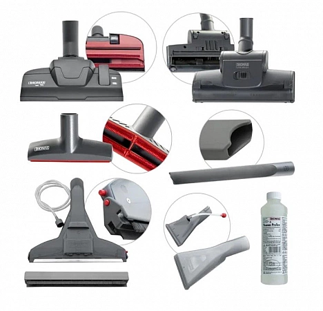 Modellen är utrustad med det nödvändiga antalet munstycken för torr och våt rengöring, som ger vård för alla typer av golv, inklusive parkett. I setet ingår även en parkettborste.