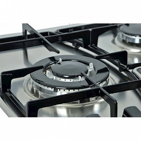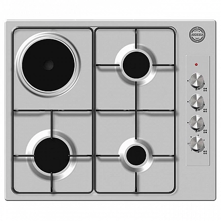 Prisvärd kombinerad panel från den italienska tillverkaren. Först och främst lockar denna modell uppmärksamhet med en universell design. Det är kortfattat kombinerat med en köksuppsättning i vilken stil som helst. Det rostfria stålhöljet är praktiskt, slagtåligt, tål mekaniska belastningar bra och är inte utsatt för korrosion. Tack vare måtten 56x48 cm kan panelen placeras även i mycket små kök. Ytterligare plus är olika diametrar och ett bra arrangemang av 4 brännare, samt smidig justering av handtagen. Av de användbara alternativen tillhandahålls en gaskontroller och automatisk elektrisk tändning. Nackdelarna med modellen är en kort tråd, ett ojämnt galler och obekväm inbäddning av panelen i bänkskivan.