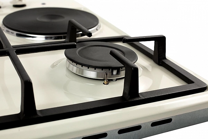 Den enda modellen i vårt betyg med icke-standardiserade brännare. Denna häll har en gasbrännare med en tredubbel lågkrona och en elektrisk brännare med en oval värmezon. De är speciellt designade för snabb matlagning.