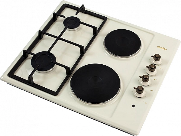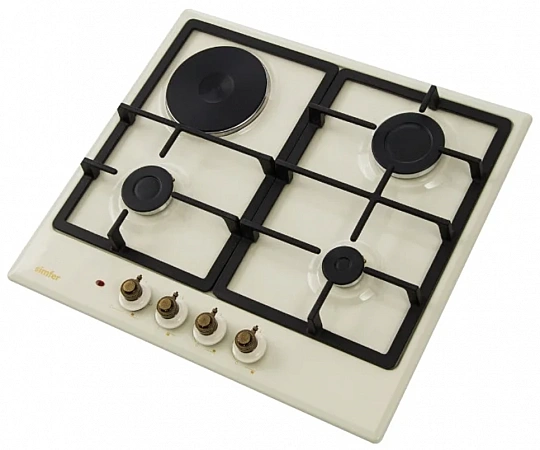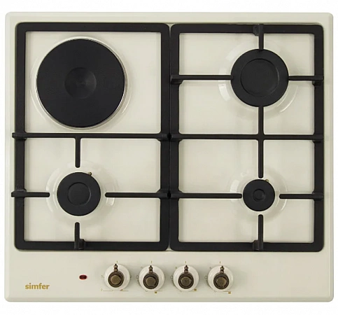 Universalhäll utrustad med 3 gas- och 1 elektriska brännare. Du kan hitta många positiva recensioner om det från användare. För det första har denna modell både mycket små och stora brännare. För det andra är det tillräckligt med avstånd mellan dem så att alla 4 kokzonerna kan användas samtidigt. För det tredje försåg tillverkaren Simfer H60V31O512 med en låsknapp. Det används vanligtvis som skydd mot barn. Emaljbeläggningen och gjutjärnsgrillarna är gjorda av slitstarkt material och förlorar inte sina egenskaper vid långvarig intensiv användning. Små minus - retrostil och endast 1 elektrisk brännare.