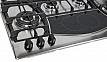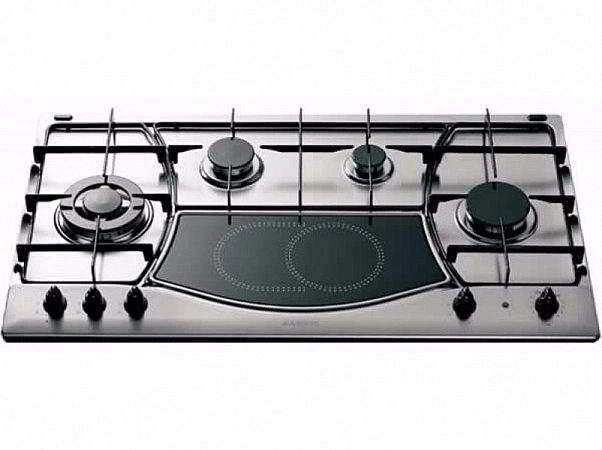 Kombinerad häll i lyxsegmentet. Huvudfunktionen hos modellen är det sällsynta PowerBoost-alternativet. Med den kan du styra all ström till en induktionshäll och värma upp den på några sekunder. Dessutom är panelen utrustad med lås, barnskydd, gaskontroll och timer. Den har en enkel meny och en bekväm touchpanel som kan användas även med våta händer.Den största olägenheten vid användning är förknippad med brännarnas irrationella arrangemang. De står för nära varandra, vilket gör det problematiskt att ställa två stora kastruller eller kastruller på hällen. Dessutom blir panelens yta snabbt smutsig, den måste tvättas omedelbart efter tillagning.