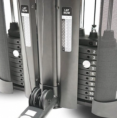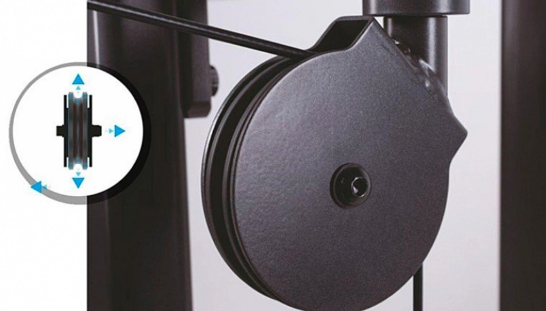 Maskinen är utrustad med en viktstapelskyddskåpa, skyddsspetsar på handtagen och överdimensionerade lager.