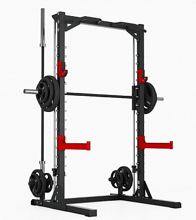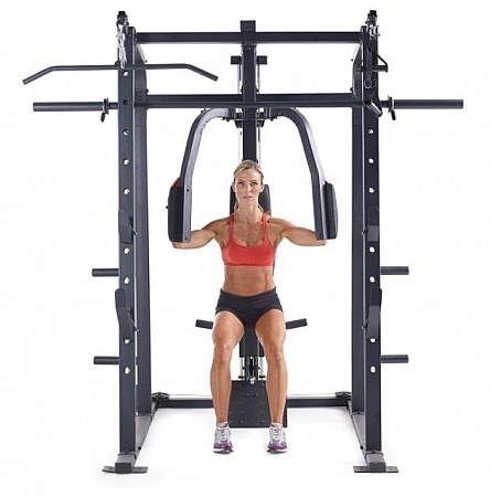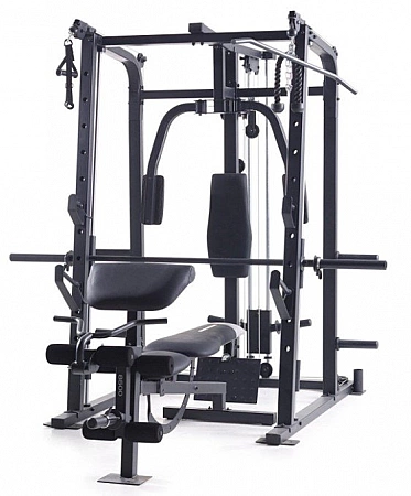 Smith-maskinen är en av de mest eftertraktade utrustningarna på alla gym, och det är viktigt för ägaren att alltid ha den redo att gå. HM3310-modellen från den tyska tillverkaren Protrain skiljer sig i tillförlitlighet. Dess delar är gjorda genom laserskärning, respektive dimensionerna är anpassade till mikrometern. Linjära lager används - de kännetecknas av hög lastkapacitet, låg friktion och ljudnivåer och hållbarhet. Ställar gjorda av solida styrstänger ger extra stabilitet.I allmänhet är hela designen noggrant genomtänkt, men tillverkaren tillhandahåller inte en powerbänk för bänkpress eller sittande - det föreslås att köpa det separat.