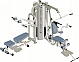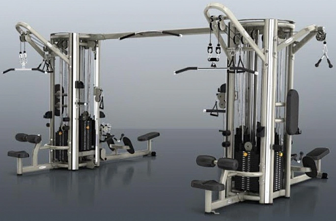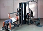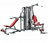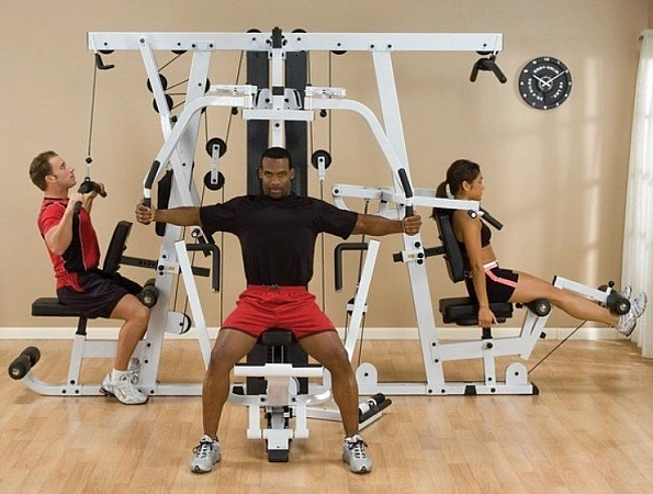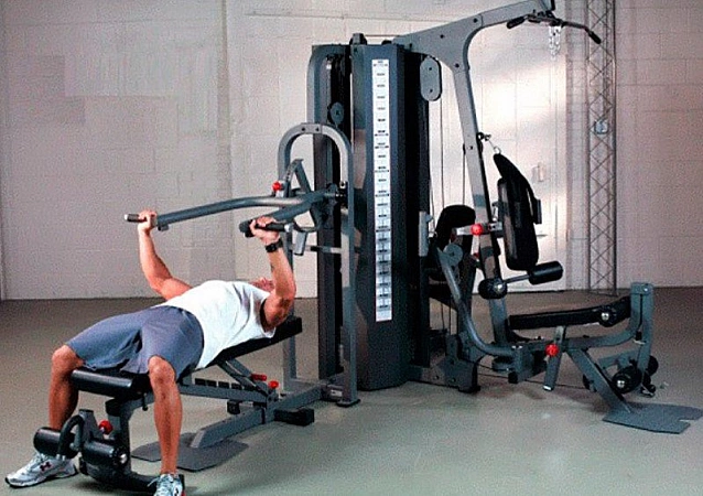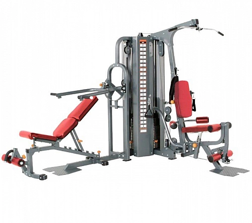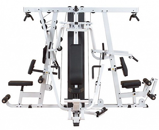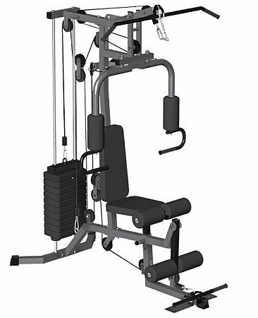 Den kraftfulla viktblockeringsmekanismen har 5 stationer för att träna alla muskelgrupper: fjäril, fästen för benförlängning, bröstpress, nedre och övre dragkraft. Basen på simulatorerna är gjord av en fyrkantig stålprofil 50 x 50 x 2 mm. Tjockleken på stål mot bakgrund av mer kraftfulla motsvarigheter från förstärkta profiler på 2,5–3 mm verkar blygsam, men i praktiken visar designen sig perfekt. Denna parameter påverkar den maximala belastningen, som i detta fall är begränsad av tillverkaren till 120 kg. Även om komplexet inte kan kallas tunt - det väger mer än 100 kg. Och du kommer inte att kunna montera den för hand ensam - köpare varnar för att minst 2 personer behövs.