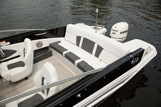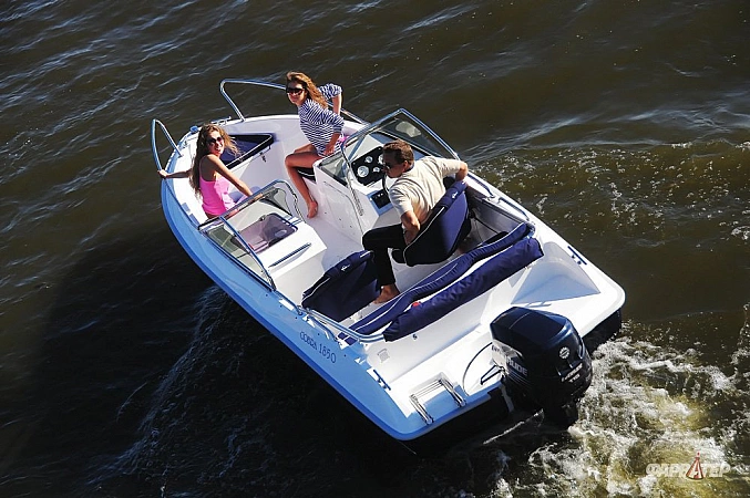 Detta amerikanska varumärke är allmänt känt över hela världen. Han var först med att montera en glasfiberbåt och förnyar ständigt. Varje modell under varumärket Glastron är ett mästerverk inom skeppsbyggnad. GT 180 är inget undantag. Dess huvudsakliga egenskap är kapacitet. Båten har 8 sittplatser. Fem ombord och tre till i bajsfacket. För att inte säga att alla passagerare kommer att trivas, speciellt om fiske är planerat, men ändå. Tillverkaren positionerar modellen som en sport- eller fritidsmodell, men den tillhandahåller hållare för fiskespön och extra ledstänger på sidorna. Ett bra alternativ om du är villig att betala ut 3,5 miljoner rubel för det.