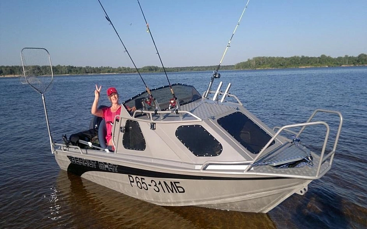 Om du behöver en kabinbåt som inte chockerar med sitt pris, då ligger den framför dig. Detta är ett ryskt märke som tillverkar båtar med de mest avancerade funktionerna. Trots designegenskaperna kan den drivas av en motor på hundra hästkrafter, vilket är en sällsynthet. Kabinutrymmet är utformat för att rymma sex personer, men fartygets bärförmåga bör beaktas.Den väger bara 500 kilo inklusive bagage. Varje stol är utrustad med förvaringsfack. Dessutom finns rymliga akterspegel och ett ankarfack i fören. Och allt detta till priset av en medelstor aluminiumsked med mycket lägre prestanda.