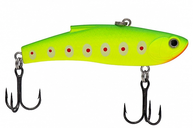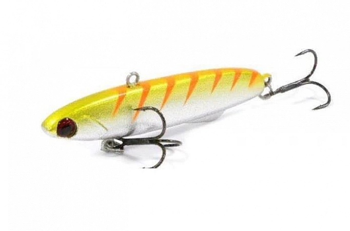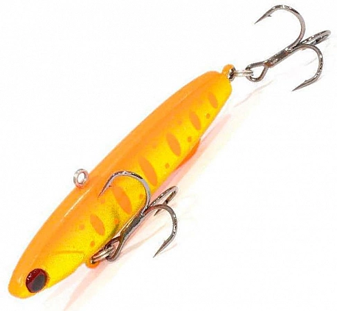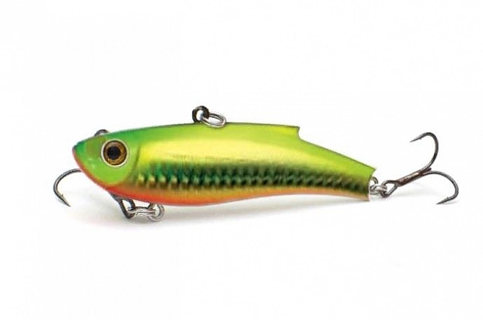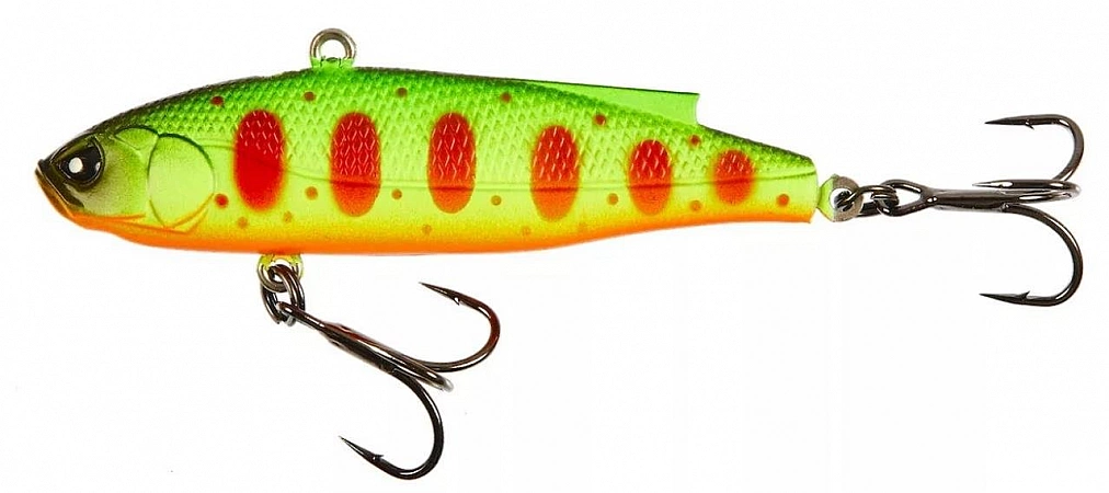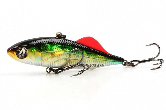 En egenskap hos denna catchy japanska rattlin är en tvålagerskonstruktion som består av en viktad kärna och en hållbar polymerbeläggning. Å ena sidan ger detta förbättrade animationsmöjligheter vid fångst av gös från isen, å andra sidan ger det möjligheter till långdistanskastning under sommarfisket. Viben fungerar tyst och ser naturlig ut både med vertikala ledningar på vintern och med horisontella ledningar på sommaren. Spelet tillhandahålls av ett utsprång på toppen av "fisken". Två skarpa t-shirts framtill och baktill på den populära ratlinen gör den till den bästa krokkroken någonsin. Valet av färger gör att du kan hitta ett effektivt alternativ för vinter- eller sommarfiske.