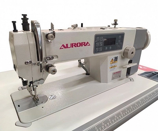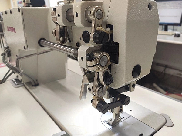 Denna modell är inriktad på att arbeta med lätta och medelstora tyger.Hon utför parallella linjer på ventiler, bälten, manschetter. Han gör det snabbt och effektivt. Ett brett utbud av nålavstånd gör att du kan utföra operationer på olika produkter - på underkläder, herrskjortor, ytterkläder. Aurora har traditionellt sett utrustat sin maskin med en funktionell fördel jämfört med analoger. Denna modell låter dig "gå runt hörnen och gå in i svängar" på vänster eller höger nål. För att stänga av en av nålarna behöver du bara vrida spaken. Detta underlättar avsevärt produktionsprocessen och förbättrar kvaliteten på arbetet. Men modellen kan passera tyger av olika tjocklek vid gränserna.