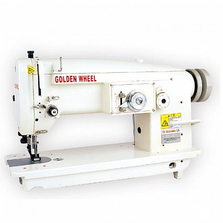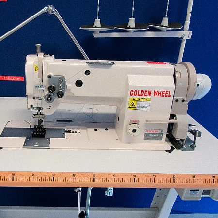 Modell för två parallella stygn på medium till tunga material. Det är oumbärligt i produktionen av jeans, ytterkläder, arbetskläder, underkläder, i efterbehandlingen av detaljer. Den större kroken minskar arbetskostnaderna genom att minska antalet lindningar av undertråd. Nålens frammatning synkroniseras med mataren, vilket hindrar tyget från att röra sig. Systemet med justeringar låter dig ändra lutningsvinkeln, höjden på stativet och typen av materialframmatning. När du byter toppförskott till botten, är monteringen av tunna material praktiskt taget utesluten, och sömmen erhålls med mindre spänning. Nålen är tydligt placerad i mitten av nålstångsmekanismen.