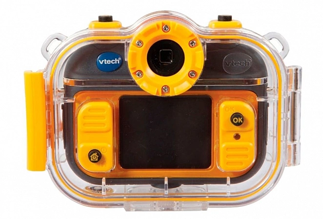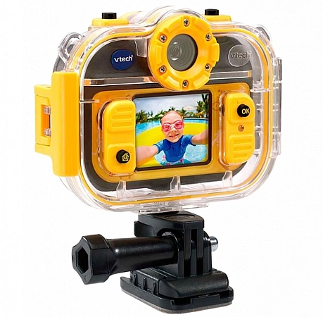 Tillverkaren positionerar den här enheten som en leksak, men dess funktionalitet är densamma som för "vuxna" actionkameror. Du kan fotografera under vattnet genom att lägga enheten i ett vattentätt fodral från satsen, rotera objektivet 180 grader, ansluta minneskort upp till 32 GB. Unga köpare lockas av den ljusa designen och möjligheten att verkligen skjuta. Men de tekniska egenskaperna är inte så rosa - videokvaliteten begränsas av en svag kameramatris och låg upplösning.Men det finns en skärm här, du kan göra time-lapses. I satsen finns förutom aquaboxen även ett par fästen och en rem. Recensioner säger att barn är nöjda med köpet, och vuxna är missnöjda med kvaliteten på fotograferingen. Det finns också tillförlitlighetsproblem – actionkameran kan gå sönder efter några dagars användning.