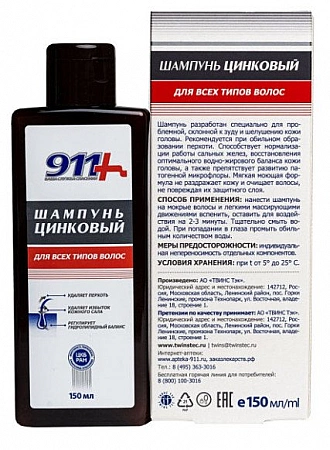 Billigt zinkschampo för komplex behandling av hårbotten med psoriasis, seborroiskt eksem. På grund av den flytande konsistensen appliceras den lätt på huden, efter sköljning stannar den inte kvar på strängarna.Dessutom kan verktyget användas dagligen. Appliceringsmetoden är enkel: applicera bara kompositionen i hårbotten, håll i 3-5 minuter och skölj sedan. Enligt recensioner förbättrar detta schampo hårets kvalitet: de blir mjukare, får glans. 911+ har en stor nackdel: den innehåller fortfarande farliga sulfater och andra ämnen, som kan orsaka en allergisk reaktion efter den första användningen. Vissa användare klagar också över låg skumbildning och dålig effektivitet av produkten när den används under en förvärring av sjukdomen.