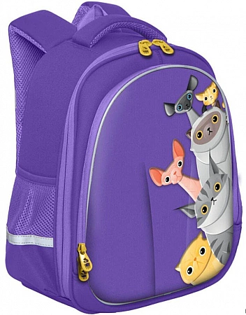 En ryggsäck med formgjuten bas har optimala mått och volym för en grundskola. 12 liter räcker precis till allt skolmaterial. Tack vare 2 rymliga fack, varav ett har en organisatör för A4-storlek, blir det lätt för barnet att hålla den interna ordningen. Modellen är utrustad med ett övre handtag - tätt och bekvämt, samt två breda remmar med justerbar längd. Designen är styv, motståndskraftig mot deformation under mekanisk belastning.På baksidan finns mjuka anatomiska kuddar placerade på ett speciellt sätt så att ryggsäcken sitter tätt mot ryggen och inte tvingar ryggraden att böjas. Lätt, bekväm och oförstörbar - det är så föräldrarna karaktäriserar denna modell och noterar separat den höga kvaliteten på dess material och skräddarsydda.