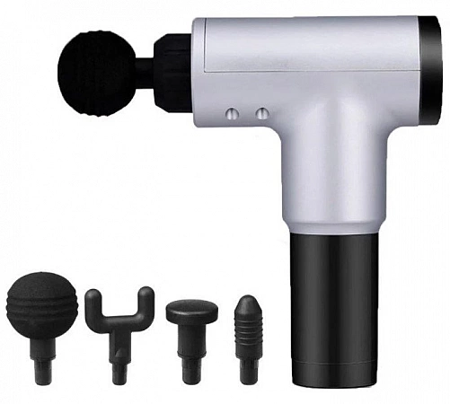 Budgetprylen är mycket välutrustad. Setet kommer med 4 utbytbara munstycken: kula för ryggen, U-formad för nacken, konisk och platt för hela kroppen. Med deras hjälp kan du utföra alla typer av massage - avkopplande, återställande, samt lindra smärta. Enhetens kraft är liten - 20 watt. Det bästa av allt är att enheten klarar handlederna och anklarna, men det är svårt för honom att träna stora muskelgrupper. Massageapparaten har ett starkt metallhölje, det ser väldigt tillförlitligt ut, men från de deklarerade 1350 g vikten blir en oförberedd hand trött efter 15 minuter, som användare skriver i recensioner. De nämner också ett svagt inbyggt batteri och rekommenderar att du använder enheten från elnätet.