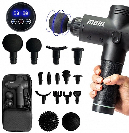 Det israeliska varumärket har visat sig väl på den ryska marknaden med billiga och konstruktivt genomtänkta massageapparater. En utmärkande egenskap hos pistoler är tydlig kontroll. Slagverk har 3 knappar: en för på/av och två för att styra intensiteten på slagkraften. Det finns en indikator på panelen för att kontrollera laddningsnivån. Den visar batteristatus i %. Enheten är kompakt, dess dimensioner är 35x25x10 cm. Den kräver inte mycket lagringsutrymme, den får plats i en liten väska för transport. Samtidigt är kapaciteten inte sämre än större konkurrenter - huvudets rotationshastighet når 3500 rpm. Det är sant att fyllningen väger mycket, vilket ledde till en ökning av vikten på hela enheten till 1,6 kg.