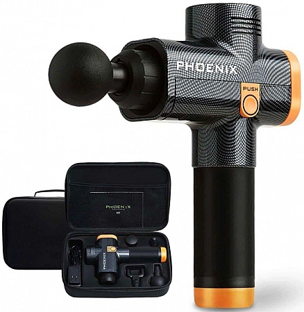 Den trådlösa enheten utför en djup slagmassage av hela kroppen. Dess vibrationer penetrerar huden med 10–15 mm. Detta gör att du kan träna musklerna intensivt, vilket minskar ingreppstiden till 5 minuter. Totalt 5 driftlägen är tillgängliga. Under varje - sitt eget munstycke för olika muskelgrupper. Tack vare dem stimulerar pistolen blodflödet, sprider salter, bryter celluliter. Ägarna av gadgeten noterar dess bekvämlighet i handen. Enheten glider inte ut - detta är fördelen med det gummerade munstycket på höljet. Själva enheten är gjord av säker ABS-plast.Det enda negativa, enligt användarna, är att vid de högsta hastigheterna ger vibrationen starkt i handen. Därför är det bäst att undvika långvarig massage vid max 3200 rpm.