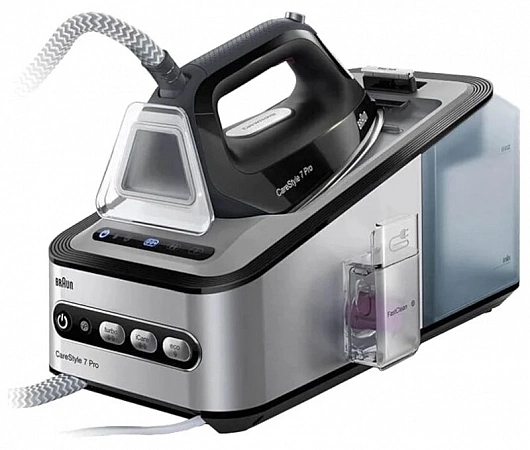 Bra kraft och en ångboost med en kraft på 500 g/min gör att du kan stryka det mesta med hög kvalitet och komfort, även hopvikt i 2-4 lager. Vertikal ångning gör att du omedelbart kan städa upp skjortor, jackor och gardiner. Bara detta sparar mycket tid, för att inte tala om att stryka sängset för en stor familj. Den stora löstagbara vattentanken på 2000 ml gör att du kan arbeta utan distraktion av att tillsätta vatten. Modellen har en stabil plattform och ett lättviktsjärn med anodiserad aluminiumsula. Ånggeneratorn är bra för alla, men efter en tid i början av strykningen kan den "spotta" med skalan. Det beror på hårdheten på vattnet som hälls - du måste använda destillerat vatten. Men problemet kan lösas på hushållsnivå - som det första för strykning är det bättre att ta en onödig bit materia.