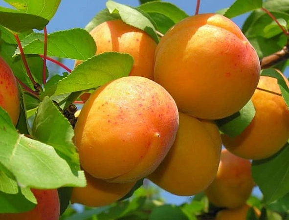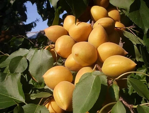 Den kungliga aprikosen kan ge upp till 40 kg frukt, men det kommer att vara möjligt att få den cirka 6-7 år efter plantering. Sorten kännetecknas av tidig mognad, vilket är bra när det odlas i centrala Ryssland och Volga-regionen, en höjd på upp till 4 meter och en liten förtjockning av kronan. Frukterna är medelstora, men de binds årligen. Smaken är anständig, all användning är möjlig. På grund av god transportbarhet är även odling till försäljning möjlig. Royal är en självpollinerande sort, behöver inte ligga i anslutning till andra aprikoser. Dess frostbeständighet i beskrivningen anges upp till -38-40 grader, men du kan hitta många recensioner från dem vars sort frös även vid högre vintertemperaturer. Förmodligen beror mycket på de specifika väderförhållandena, och inte bara på frostens styrka.
