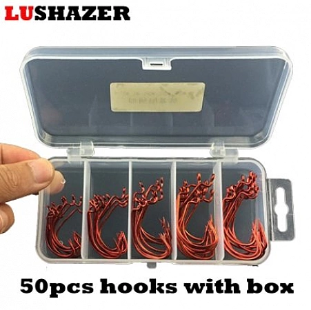 Samling med 50 krokar. Det finns fem olika storlekar i förpackningen. Detta är den rikaste utrustningen för dina pengar.