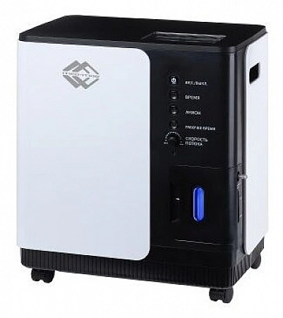 Den bärbara syrgaskoncentratorn är utmärkt för användning hemma, i bilen och för att göra oxygencocktails. Trots de blygsamma dimensionerna är enheten utrustad med modern firmware. Den går på en oljefri kompressor, producerar upp till 5 liter syre per minut, har LED-skärm, timer och överhettningsskydd. Dessutom kännetecknas modellen av låg strömförbrukning och låg ljudnivå. I recensionerna är de flesta köpare nöjda med navets kvalitet. Den tar lite plats, går tyst och är lätt att använda. Enheten hjälper effektivt patienter med andningssvikt. Men för långvarig kontinuerlig drift kanske dess kraft inte räcker till.