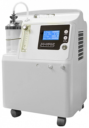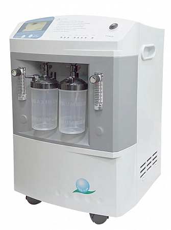 Den bästa modellen för dig som behöver behandla två patienter samtidigt. För att göra detta har enheten två utgångar samtidigt. Tja, prestandan hos MED-MOS JAY-10 är lämplig. Enheten levererar upp till 10 liter syre per minut, 5 liter per patient. Resten av navet är utrustad med en standarduppsättning alternativ. Den har en display som visar terapitiden och trycket. Den kan arbeta kontinuerligt upp till 99 timmar. Med skarpa hopp i syrenivån utlöses färgsensorer. Med tanke på enhetens kostnad och dimensioner är det vettigt att köpa den endast för behandling av två personer. Om terapi utförs för en patient, finns det för dessa ändamål mer budgetmässiga och kompakta modeller.