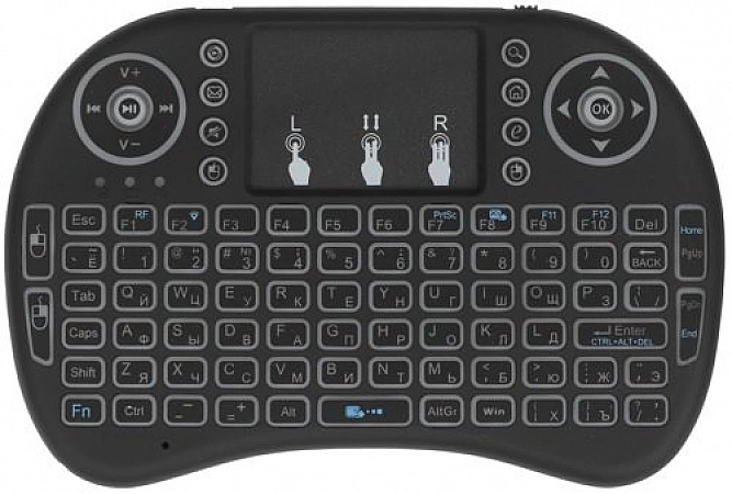 Det rysk-vitryska varumärket med registrering på Cypern nöjd med en intressant lösning som definitivt drar nytta av rollen som den mest högteknologiska i segmentet. Det trådlösa tangentbordet, riktat till surfplattor och smarta TV-apparater, är utrustat med tangenter på vars yta det finns pekzoner. Detta tillvägagångssätt gjorde det möjligt att placera den största pekplattan, som upptar cirka 80% av enhetens hela yta. Givetvis stöds geststyrning och det finns en möjlighet att automatiskt känna igen mussimuleringar. Pekreglage är en bonus för att snabbspola videor och justera volymen. Men om den här lösningen utan tvekan är den bästa när det gäller teknikens originalitet, så förlorar den direkt när det gäller autonomi. Ack, häftiga funktioner äter upp batteriet väldigt snabbt, men för att spara energi har utvecklaren introducerat ett för snabbt alternativ för att gå i viloläge, så du måste ofta klicka på mellanslagstangenten för att återuppliva tangentbordet.
