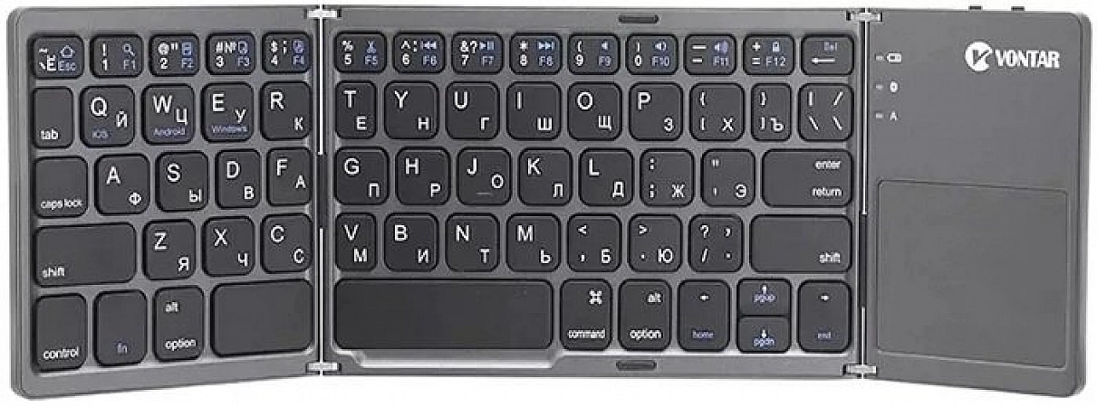 En intressant variant av ett tablettangentbord med en vikbar design som gör att du kan gömma enheten i en liten väska.Samtidigt är gadgeten relativt billig, men den har full funktionalitet av ett klassiskt tangentbord, plus att den kompletteras med en pekplatta och ett inbyggt batteri som kan ge upp till 48 timmars kontinuerlig drift och mer än 500 timmar av passningstiden. Det verkar som att allt är perfekt, men V2818 fick inte ett betyg högre än den nuvarande modellen på grund av frekventa problem med enheter som kör Windows, även om tangentbordet "klamrar fast" till Android-surfplattor från Lenovo, Huawei och andra märken utan problem. I allmänhet ett bra val för dem som uppskattar den bästa kompaktheten eller bara älskar hopfällbara prylar och använder Android-enheter.